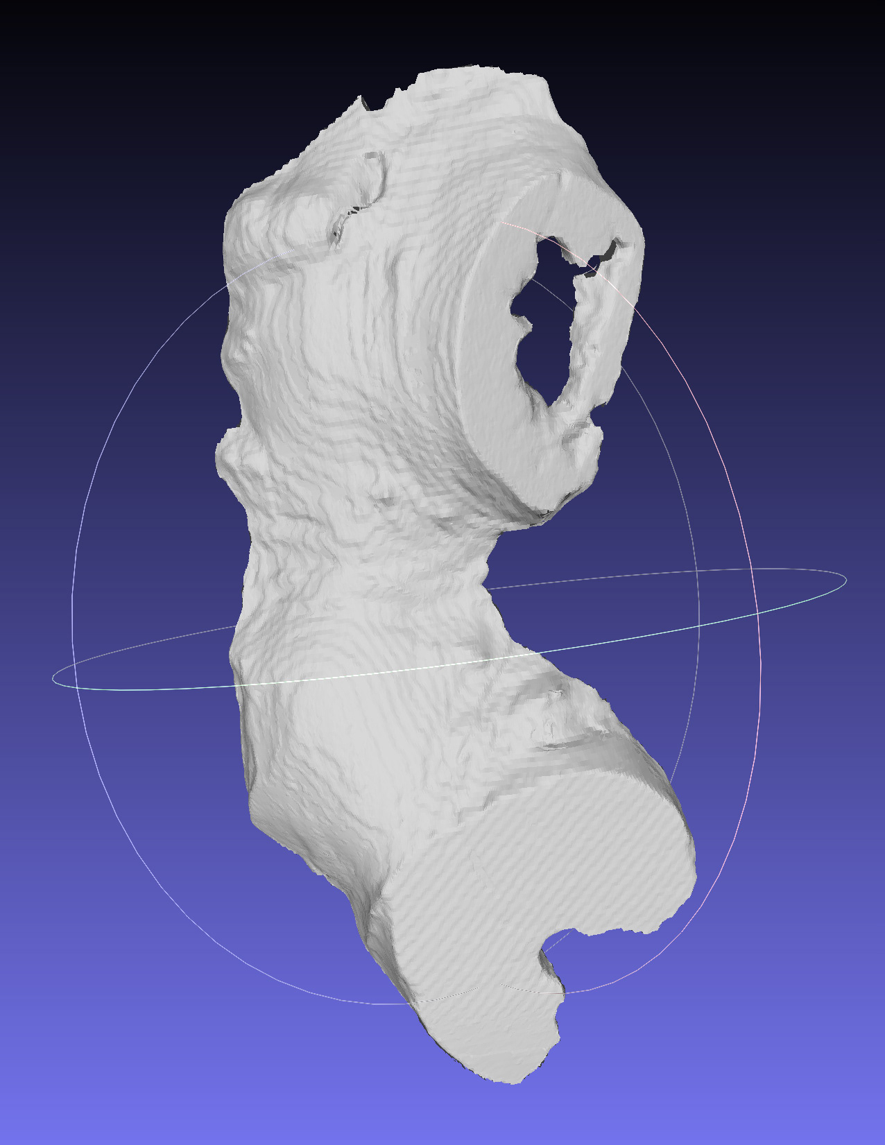 In 2024, Centaurus was 3D scanned. The intention is to create a 3D print in casting wax in order to create a full-scale version of this piece in iron, suitable for exterior display. This is an STL version of the scan as created by Meshlab.