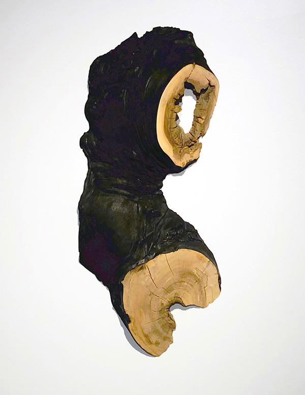 "Centaurus" is Latin for “centaur”, a creature of Greek mythology with the head, arms, and torso of a man and the body and legs of a horse. This is a bas-relief that references its likeness to the fusion of man and beast that bridges humans and nature. It was a remnant cut from another larger sculpture. The natural surfaces are scorched and oiled to retain the skin-like quality of the wood.