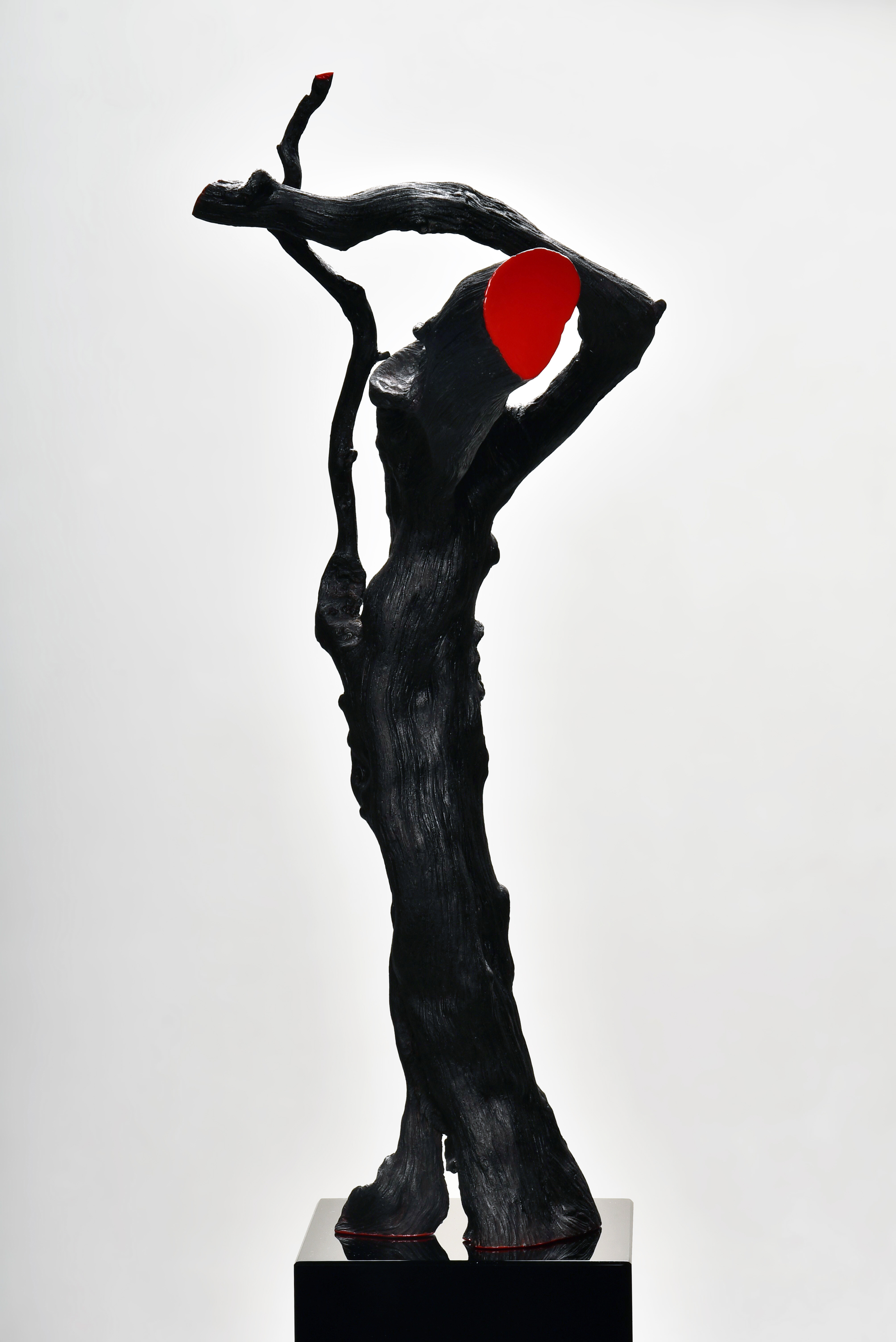 Red oak root, black/red urushi lacquer 5"w x 14”h x 4”d 2020